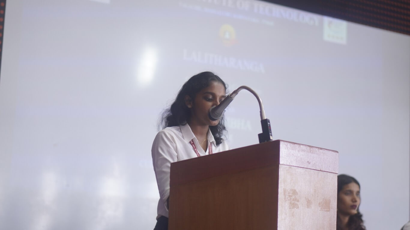 The programme commenced with a welcome address by Ms. Athmi Shetty, 7th Semester AI & DS, followed by a brief report on the two-day fest presented by Ms. Malavika Ganesh M. V., 7th Semester Computer Science and Design, who highlighted the series of cultural events, competitions, and enthusiastic student participation that made the fest memorable.